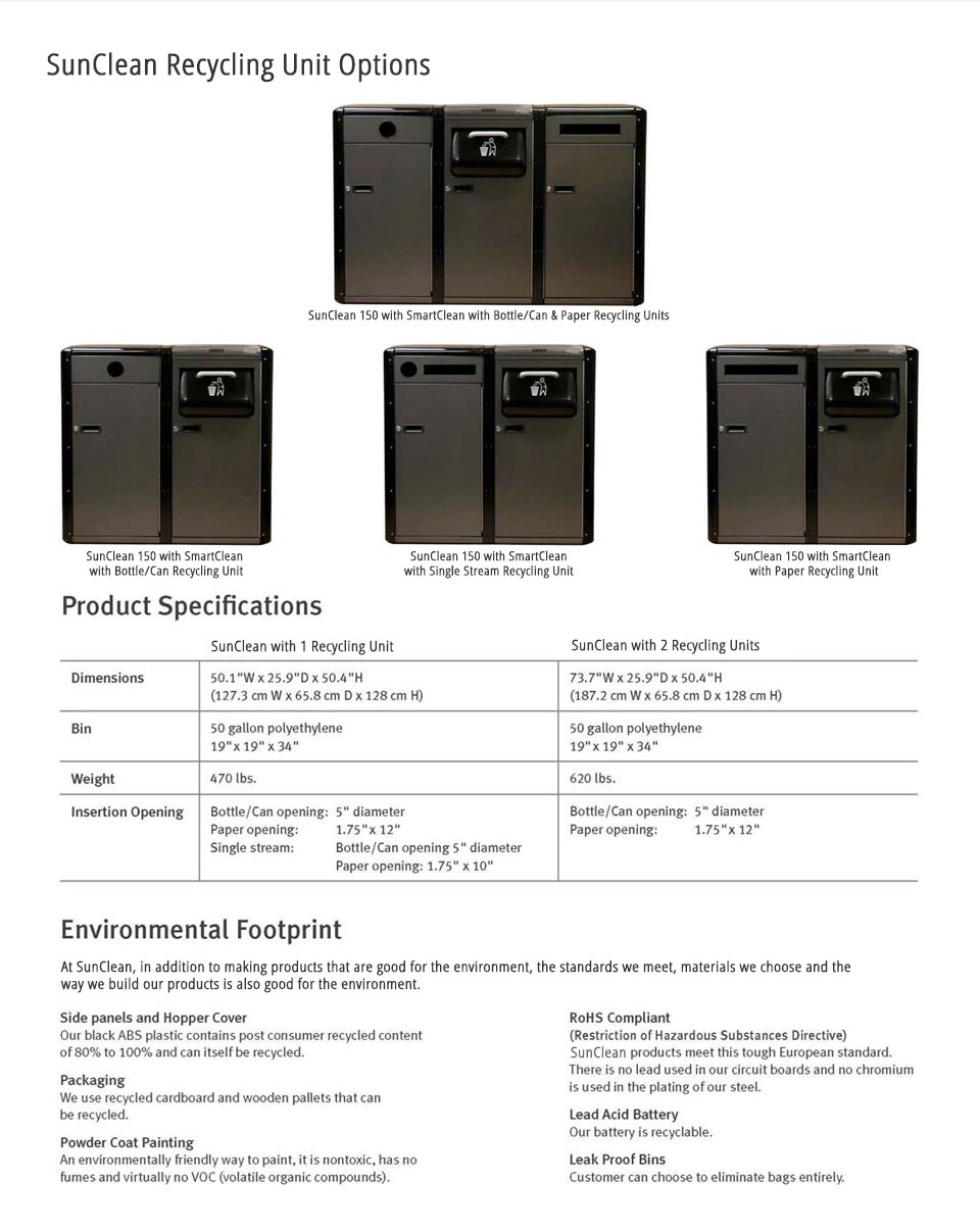 SunClean makes recycling easy with a revolutionary system designed for the collection of glass, aluminum, paper, and plastic, metal cans. With our SunClean Chute Fed Recycling System with NuReTec Technology, recycling and sorting is convenient and cost-effective.