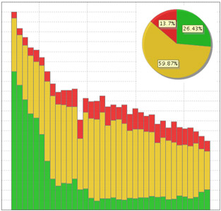 By only collecting waste and recycling from each location when it is ready to be emptied, operations can be streamlined and unnecessary fuel and labor usage reallocated. Historical analysis across the entire deployment clearly illustrates how total collections are reduced when staff only collects locations that are “yellow” or “red”.